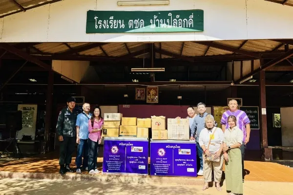 German Camp ได้นำข้าวสารอาหารแห้ง ยาสามัญไปแจกเด็กๆ และมอบตู้แช่แข็งให้กับ โรงเรียน ตชด. บ้านปิล๊อกคี่